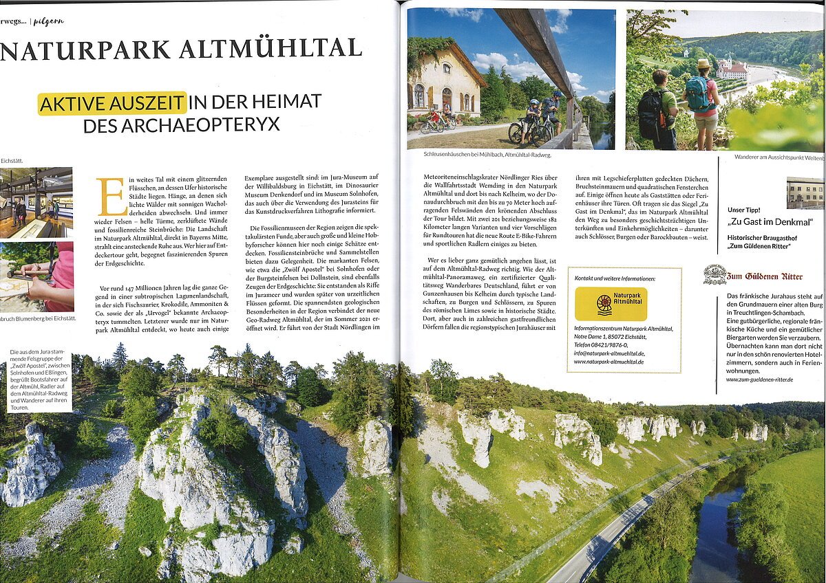 Der Naturpark Altmühltal reserviert ein 2/1-seitiges Advertorial für 3.998,00 € netto für die Ausgabe 2/23 | EVT 14.04.2023, übernimmt die Hälfte der Kosten und auch Gestaltung und Abwicklung des Advertorials.